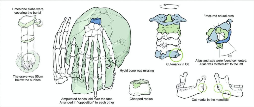 Furthermore, the cuts left on the bones were signs that the flesh had been removed from the head prior to it being buried. However, there’s no evidence to suggest decapitation was the cause of death.