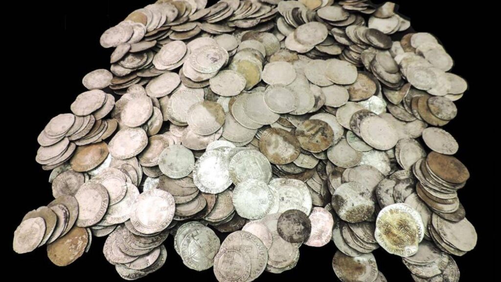The coins are relics from a time long past, with the most recent being from 1643. While a buried pot originally held them, they were reportedly found distributed throughout the soil.