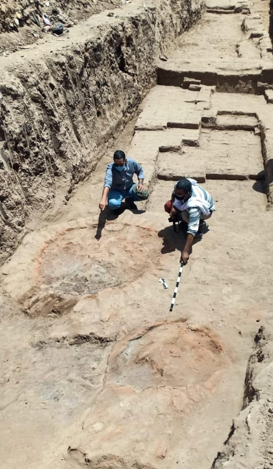 The Egyptian archaeological mission revealed during the works of the project to restore and revive the major historical road known as the Rams Road, a number of round ovens for burning mud-brick with burning marks, and a huge wall of mud bricks from the Roman and Late Periods.