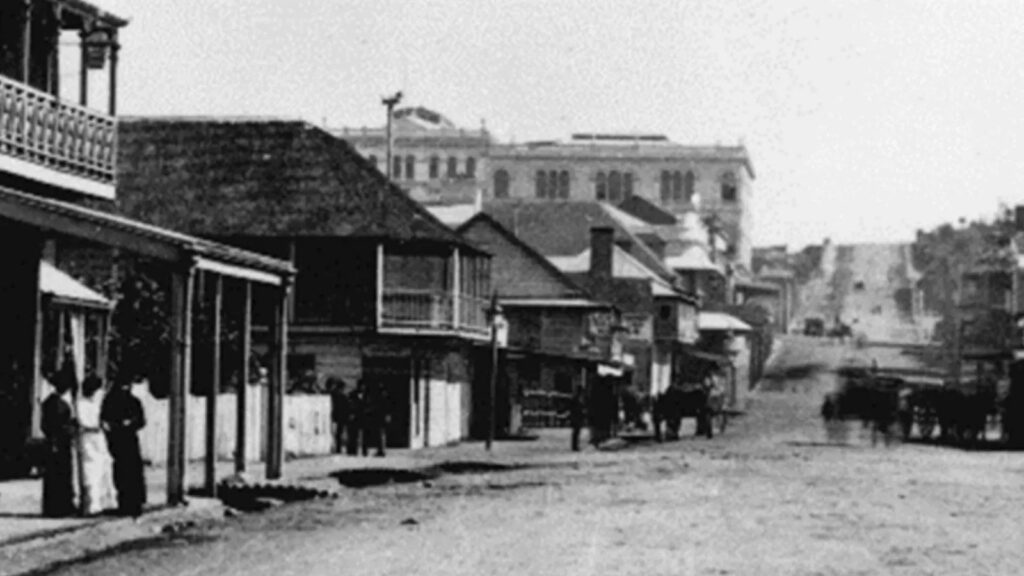 Frog’s Hollow was the boggy, low-lying area that ran from the bottom of Albert Street near the Botanic Gardens towards Elizabeth Street and stretching two or three blocks either side of Albert Street.