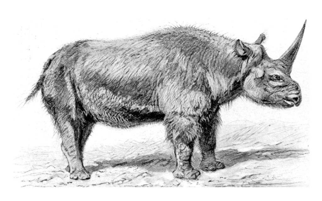 So, if you want a correct image in your head, think of a fuzzy rhinoceros with one long, slender horn protruding from its face instead of a short, stubby one like today’s rhinos.