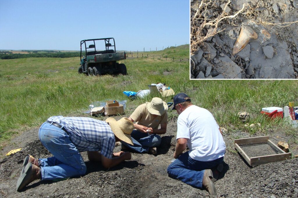 Researchers excavate a farm in Kansas where the Credotus teeth were found