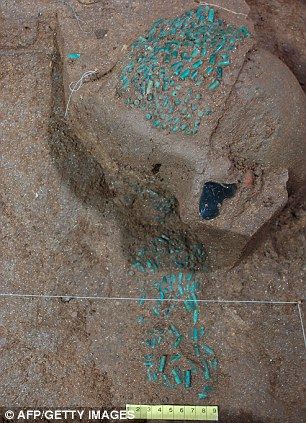 Inside the grave, the team found glistening jade jewels including a necklace with a pendant carved in the shape of a vulture’s head, a symbol that represented power and high economic status, and that was given to respected elder men.