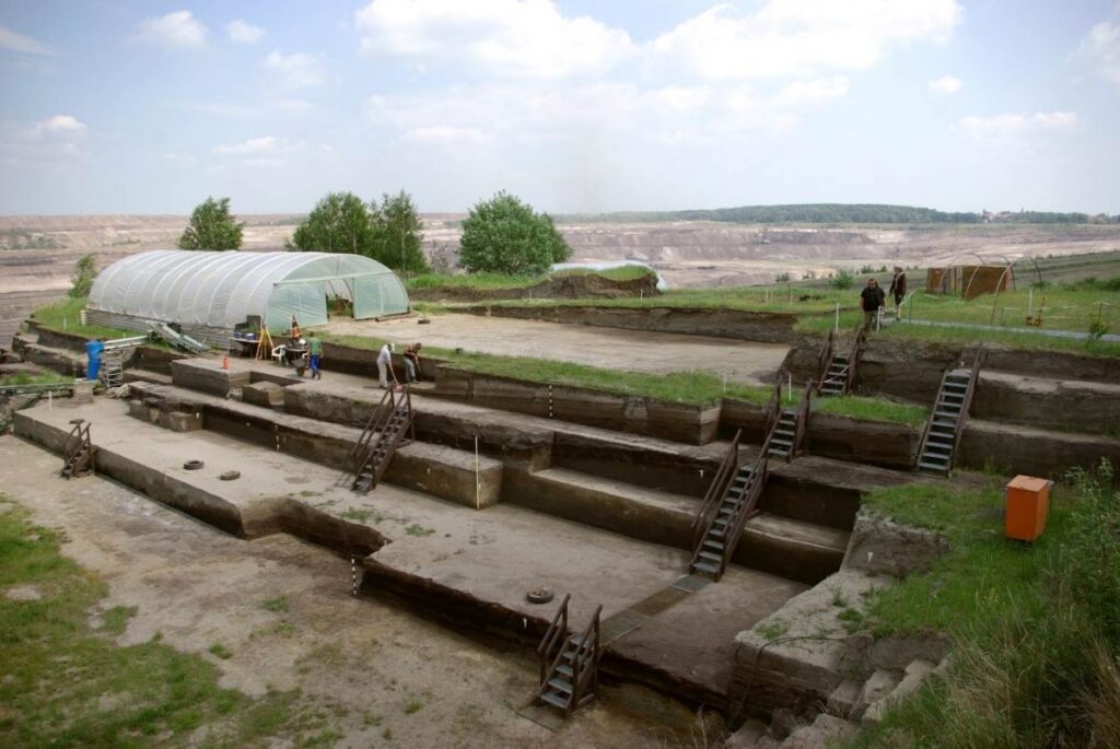 Overview of the excavation at Schöningen. Researchers attribute the discovery to the ‘outstanding’ preservation of wooden artifacts in the water-saturated lakeside sediments in Schöningen