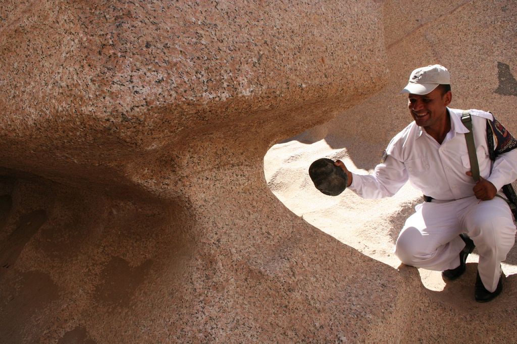 When the block of rock was finally freed from the bedrock and seen to be in one sturdy piece, the surfaces of the obelisks were leveled by repeatedly pounding them with hand-sized Dolerite stones as described above.