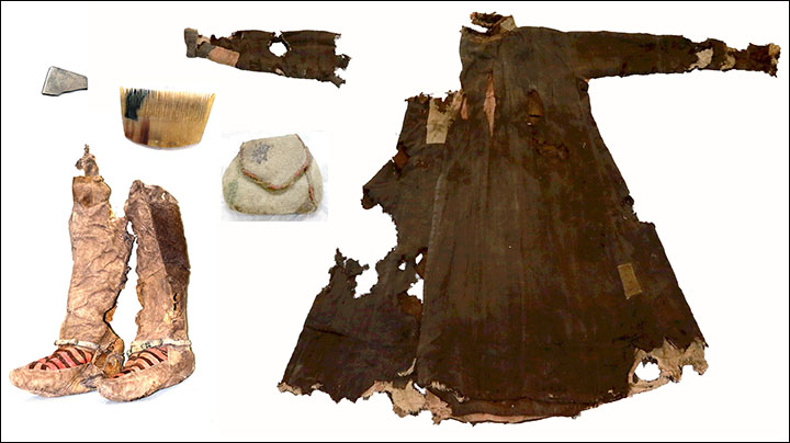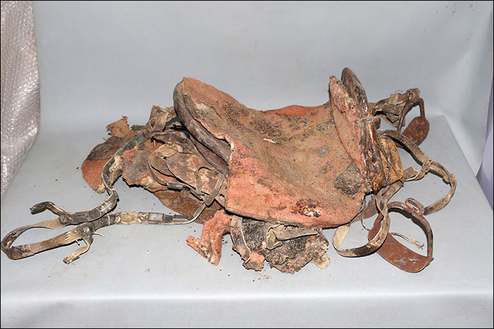 A host of possessions were found in the grave, offering a unique insight into life in medievMongolia. These included a saddle, bridle, clay vase, wooden bowl, trough, iron kettle, the remains of an entire horse, and ancient clothing.