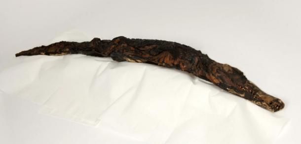 Various animal mummies were examined during the study, including wading birds, cats, falcons and shrews, and a five-foot-long crocodile. Scans revealed that the mummified crocodile contained eight baby crocodiles that had been carefully prepared and bound together, and wrapped with the mother in one big crocodile-shaped mummy.