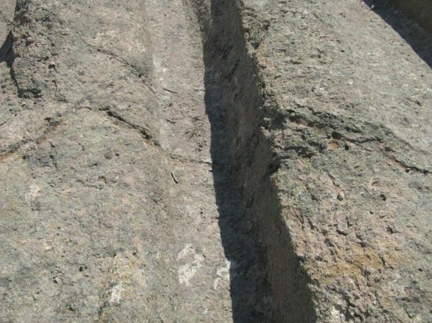 ‘The maximum depth of a rut is about three feet (one meter). On the sides of ruts, there can be seen horizontal scratches, it looks like they were left by the ends of the axles used for ancient wheels.