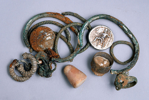 The Israel Antiquities Authority said that, in Israel, ancient coins and jewelry from the time of Alexander the Great were found in a cave. In addition, several pieces of silver and bronze jewellery were found, including decorated earrings, bracelets, and rings, which were apparently concealed in the cave, inside a cloth pouch.