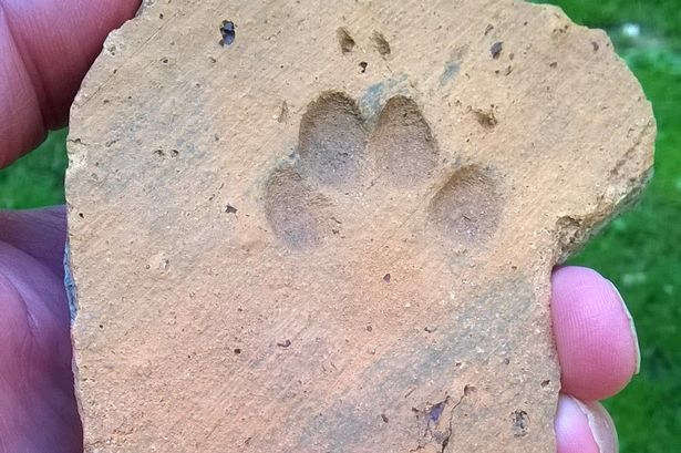 It is believed that the tile, which was used in the complex, had just been moulded and was being left to dry before firing when the cat walked across it.