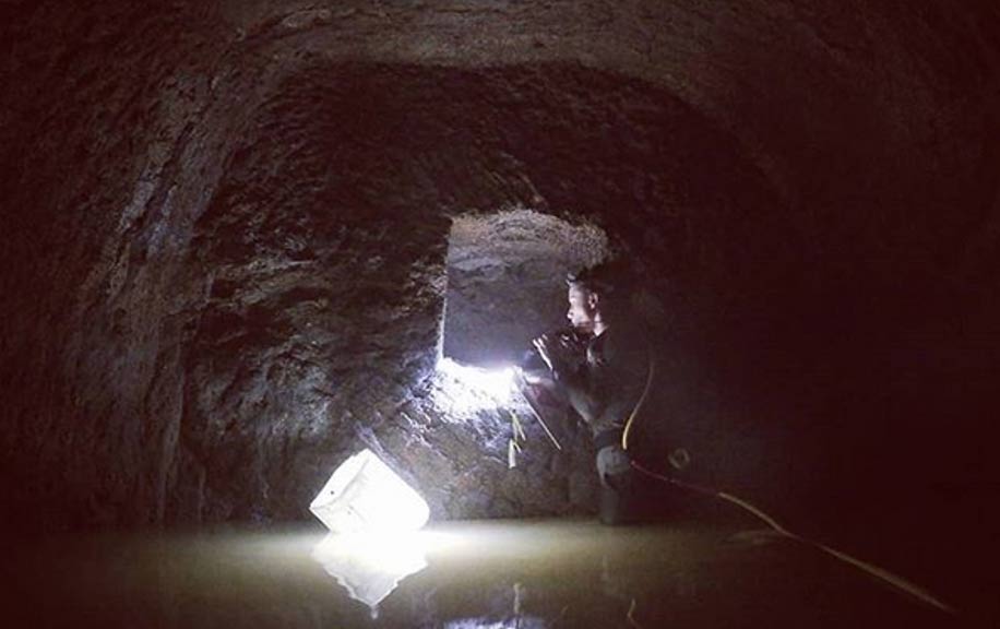 In 2018, the team located the 65-step stairway and began excavating, but when they got to around 40 stairs down they hit a water table – enters underwater archaeologist Pearce Paul Creasman – associate professor in the dendrochronology laboratory at the University of Arizona, who led the team into the subaquatic ancient tomb for the first time in at least 100 years.