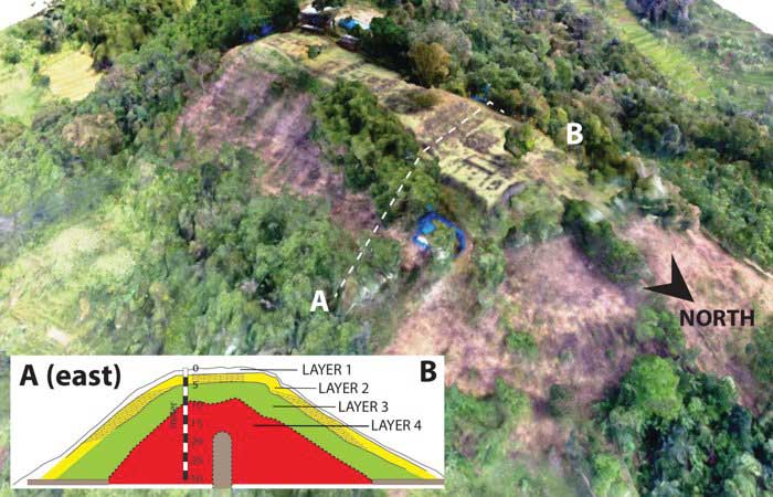 Located atop Mount Padang in West Java, the structure is topped by an archaeological site that holds rows of ancient stone pillars.