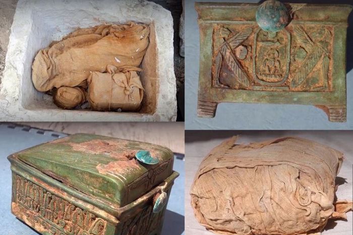 In the case of the bundle, the four layers of linen canvas-covered a wooden box, in which there was a faience box in the shape of a chapel. It contained one of the names of Pharaoh Thutmose II.