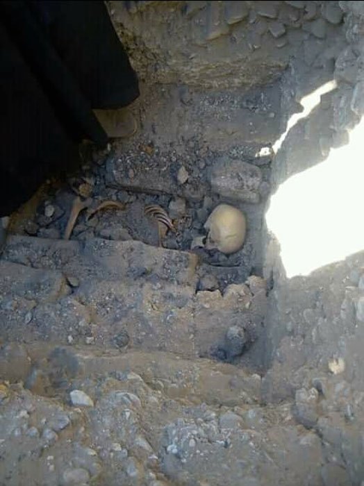 The skeletal remains, hugging in the crypt, of a 13-year-old girl, have been discovered by Egyptian archeologists excavating the pyramid ruins 60 miles out of Cairo.