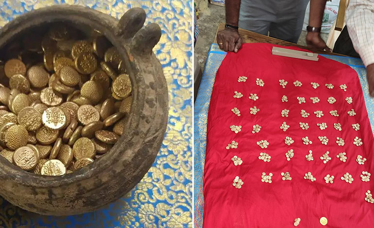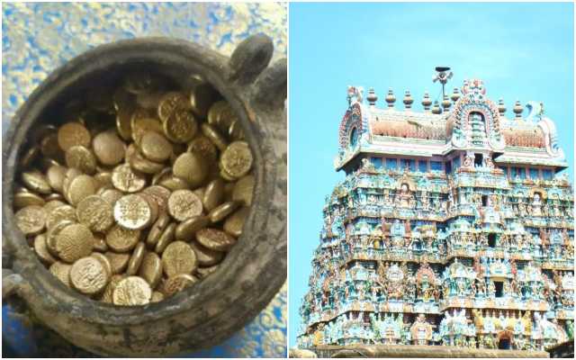 In Thiruvanaikovil, Tamil Nadu, the Jambukeswarar temple struck gold when 505 gold coins in the sealed vessel were discovered during digging.