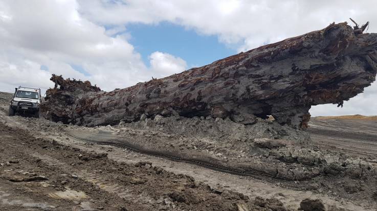 The kauri tree revealed during the expansion of the Ngāwhā Generation geothermal power plant. Chris Turney from the University of New South Wales led the analysis of the tree. He is an expert in paleoclimatology and climate change. His research is funded by the Australia Research Council.