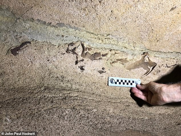 Hodnett said teeth and dorsal fins of other shark species are also exposed in the cave ceiling and walls.