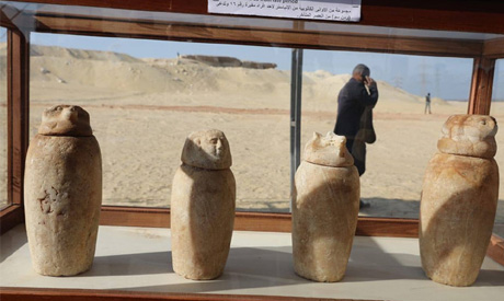 The discovery also includes eight groups of painted canopic jars made of limestone with inscriptions showing the titles of their owner, who bore the title of the singer of the God Thoth.