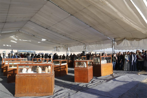Many pottery vessels of different shapes and sizes, which were used for funerary and religious purposes, were also unearthed along with tools for cutting stones and moving coffins, such as wooden hammers and baskets made of palm fronds.