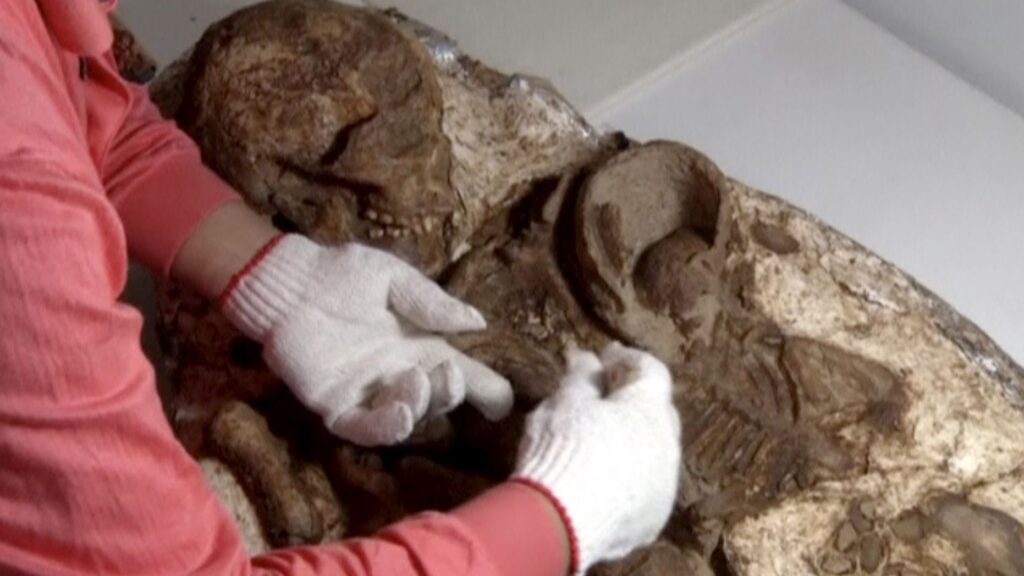 Archaeologists discover 4,800-year-old fossil of a mother cradling a baby