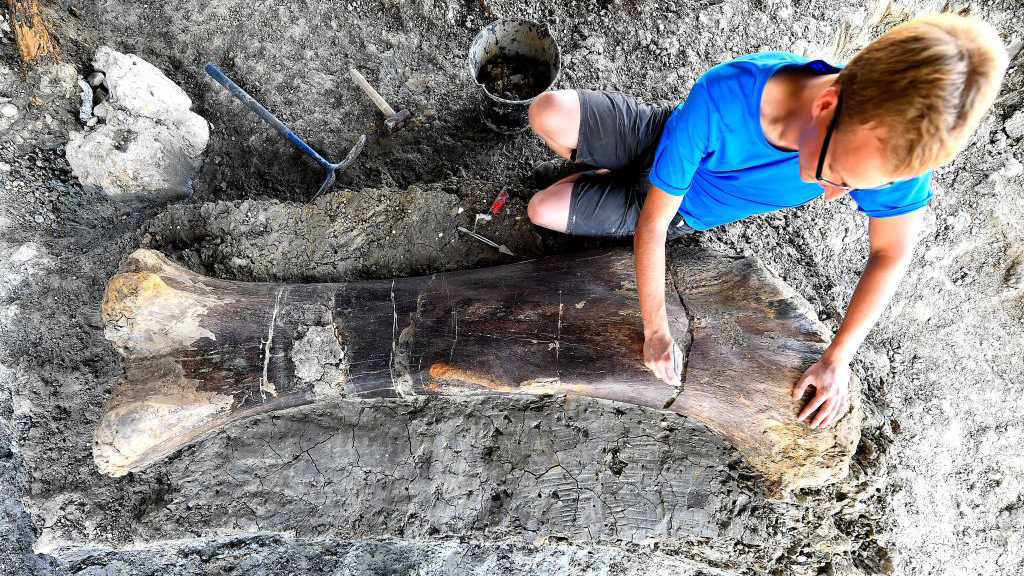 Uncovered resting in a thick layer of clay, scientists discovered bones from the mammoth creature’s pelvis as well.