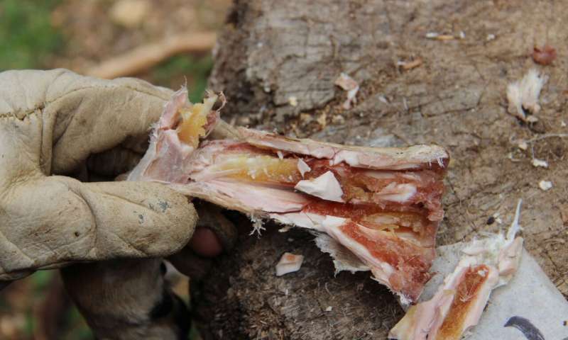 Researchers found deer leg bones had specific chopping marks on them which do not look like marks left from stripping fresh skin.