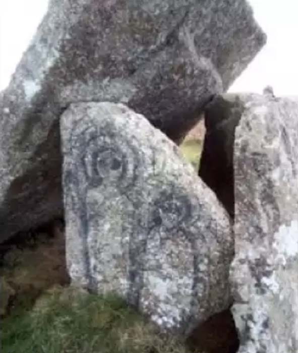 It is believed that the stereotypically alien figures painted on the rock at Mulfra Quoit were inspired by the fringe theory that the ancient structures were built by extraterrestrials, or by humans honoring visiting aliens in prehistory.