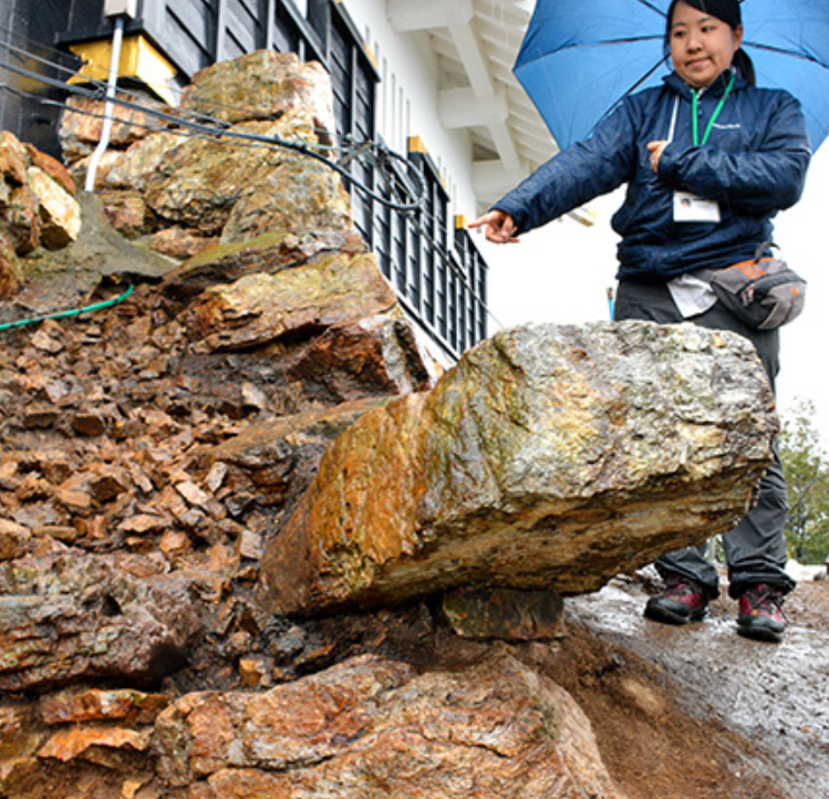 This seems like another pile of rocks to the uninitiated. But stones unearthed here apparently constitute part of the oldest castle keeps ever built in Japan. The stones form part of the top section of the base of a Gifu Castle keep likely built by legendary warlord Oda Nobunaga (1534-1582).