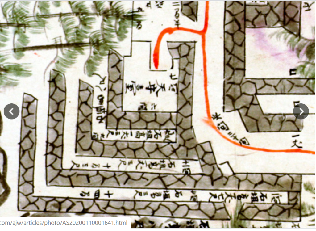 Luis Frois, a Portuguese missionary who visited the site two years after the takeover, wrote, “There was a gorgeous Japanese-style guest room (at the castle on the mountain),” according to the city’s education board.