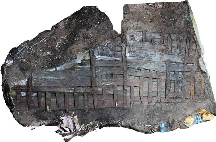 In addition to the shipwreck, archaeologists also discovered coins, pipes, ceramics, glass and a small ball of clay in mud that perhaps a child had lost.