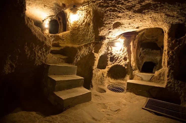 Derinkuyu Underground City, which has large, cavernous rooms arrayed on seven levels; Gaziemir Underground City, where you can see churches, a winery with wine barrels, food depots, hamams and tandır (clay-oven) fireplaces; and Özlüce Underground City, which is less developed and less crowded.
