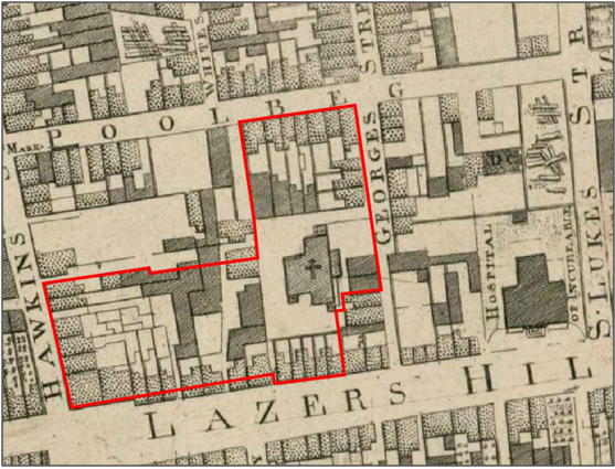 “There was probably a building used as a chapel from the foundation of St Andrew’s parish in 1709 and it is depicted on John Rocque’s map [of Dublin] of 1756,” the archaeological report prepared for the developers says.