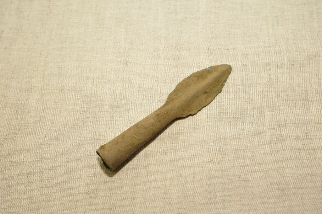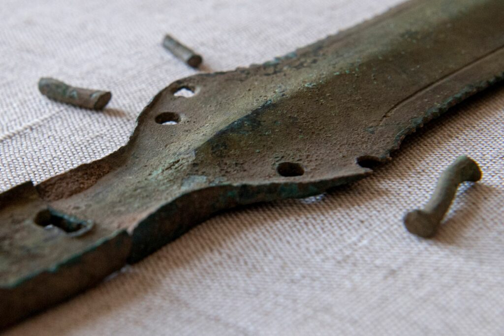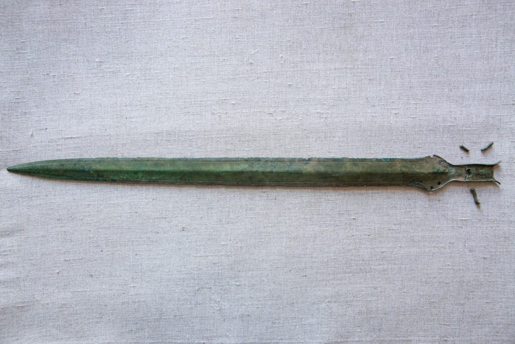Archaeologists searched the find site and discovered rivets used to attach the sword’s handle. (The handle was made of organic material that has long since decomposed.) They also found a bronze spearhead from the same period.