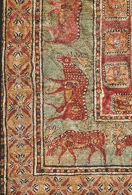 Based on a study of ancient artistic development, textile expert Ulrich Schurmann has reached the conclusion that the rug is of Armenian origin.