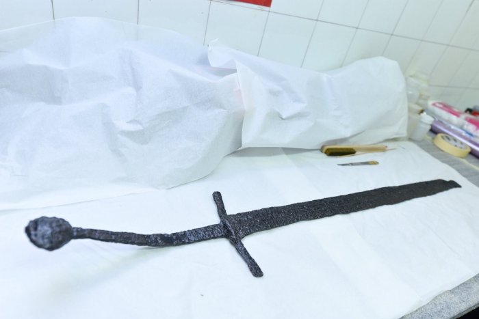The 700-year-old sword was found 36 feet underwater, stuck in a rock while archaeologists were excavating a nearby castle.