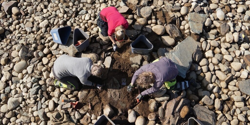 “We’d gone over the spot with the metal detector, and so we knew that there was something under one of the stone slabs in the burial cairn,” says archaeologist Ellen Grav Ellingsen, who filmed the discovery with her mobile phone when the rock was lifted away.