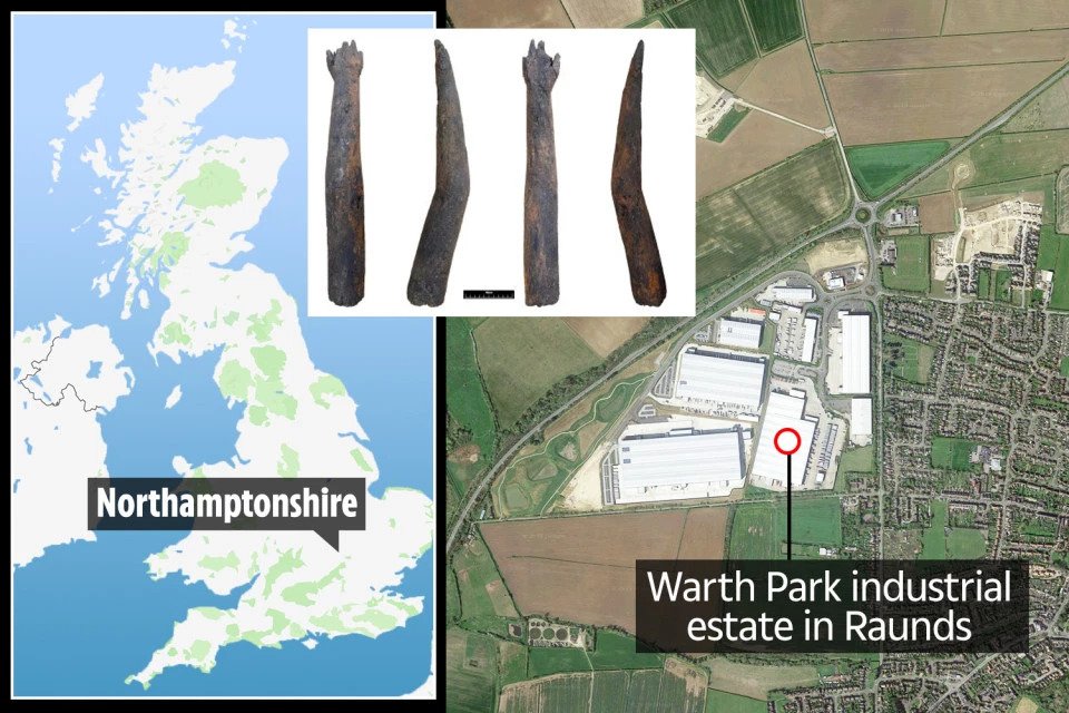 The “finely carved” limb was found by archaeologists excavating land at the Warth Park industrial estate in Raunds, Northamptonshire.