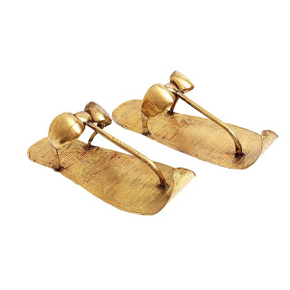 A pair of golden sandals found in King Tutankhamun’s tomb that shows how Egyptian sandals were made