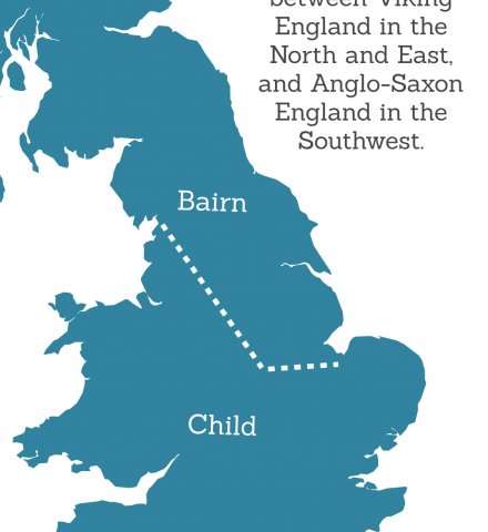 They also left their own mark on the language, with the word ‘bairn’ from the Old Norse barn, meaning child, still used widely in the North of England.