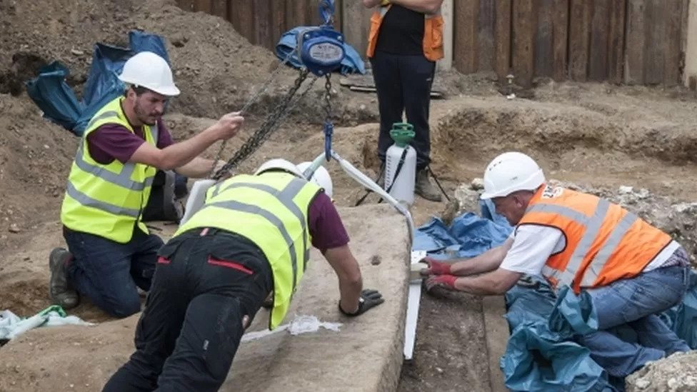 An ancient Roman sarcophagus has been excavated from a building site in central London. The 1,600-year-old coffin found near Borough Market is thought to contain the remains of a member of the nobility.