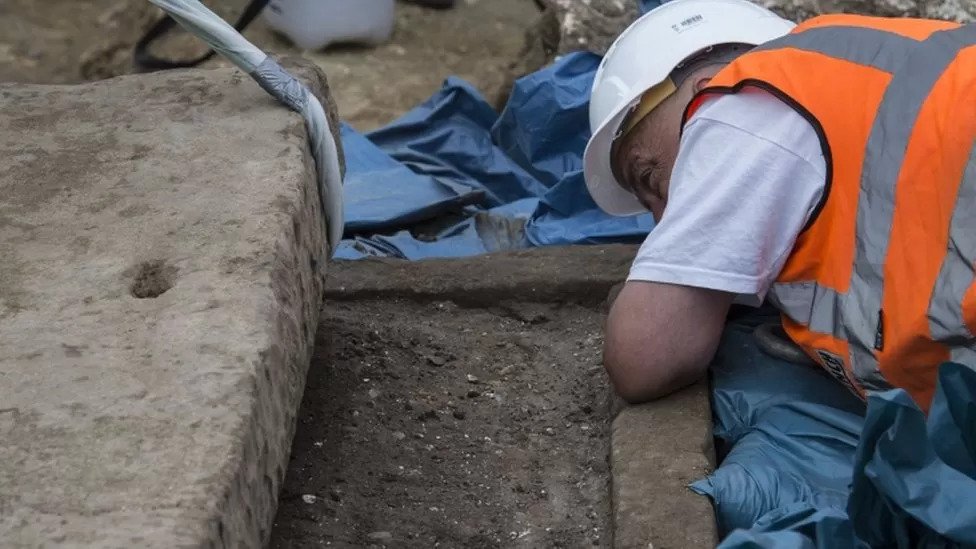 Archaeologists have been unable to identify the body as the stone coffin has been left filled with soil after being robbed, experts believe.