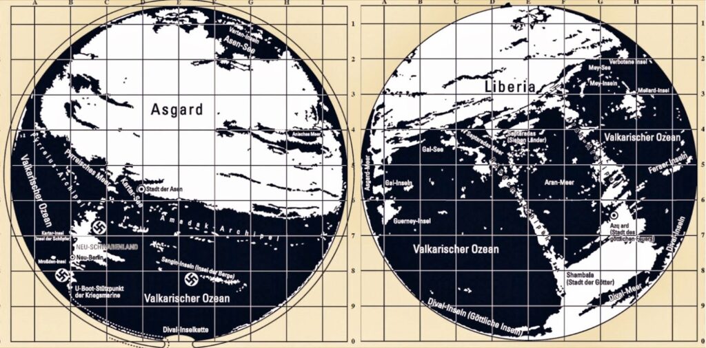 In addition, documents obtained by the soviets at the close of WW2 recently surfaced which shows a 1944 map from the Third Reich detailing not only the direct passageway used by German U-boats to access this subterranean domain, but also a complete map of both hemispheres of the inner realm of Agharta, the mythical name of the inhabited subterranean world.