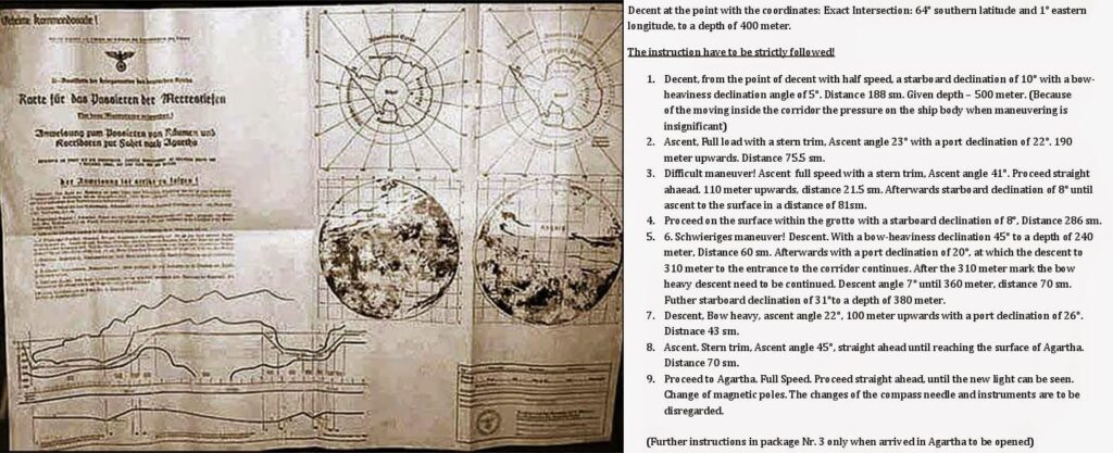 Below is a translation of the Top Secret instructions and specific detailed directions left for the Nazi U-boat Captains to follow in order to reach the inner-world kingdom of Agartha.