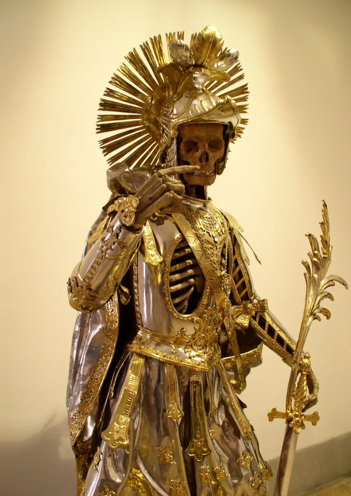 As the Catholic churches were systematically stripped of their icons, the Vatican came up with a rather strange solution. They ordered that thousands of skeletons be exhumed from the catacombs beneath Rome and installed in towns throughout Germany, Austria and Switzerland. Few, if any, of the corpses belonged to people of any religious significance, but they were decorated like saints.