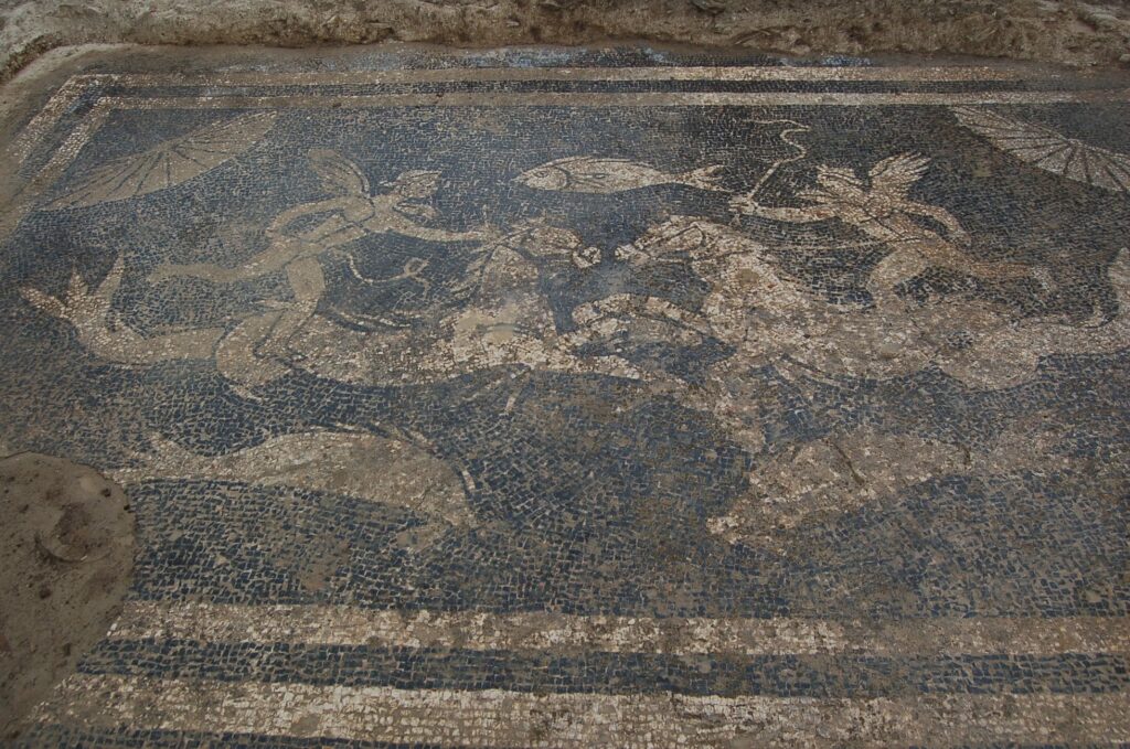 The researchers discovered two streets, the whispers of sidewalks, four rudimentary cement sewer outlets, one life-sized marble hand of a presumed public monument, and even the reception room of a thermal bath—complete with mosaics preserved by the collapsed sandstone ceiling.