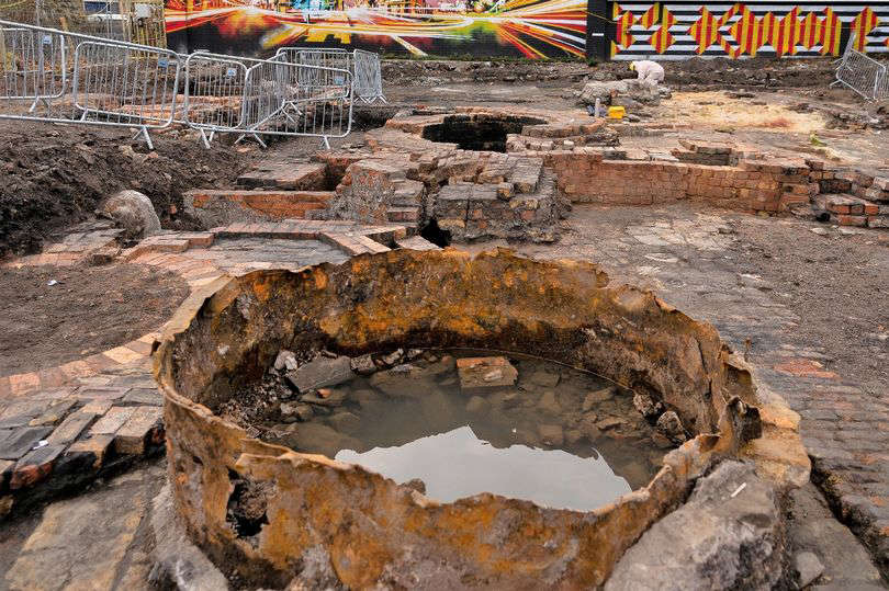 The archaeologists found most of the excavated remains date from the later 19th and early 20th centuries and comprise the foundations of industrial buildings containing numerous coal-fired metal smelting furnaces with associated underground flues and stoking cellars, and the bases of three huge Lancashire boilers that provided the steam for the steam engines that powered the works.