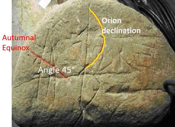 Specifically, two points – A and B – are the limits of its declination along the precessional cycle. This is a very important device, because it is possible to establish the correct measurement of the degrees, obtaining the right position of Orion along its declination and the time when the stone was engraved.