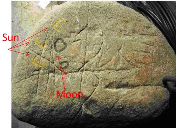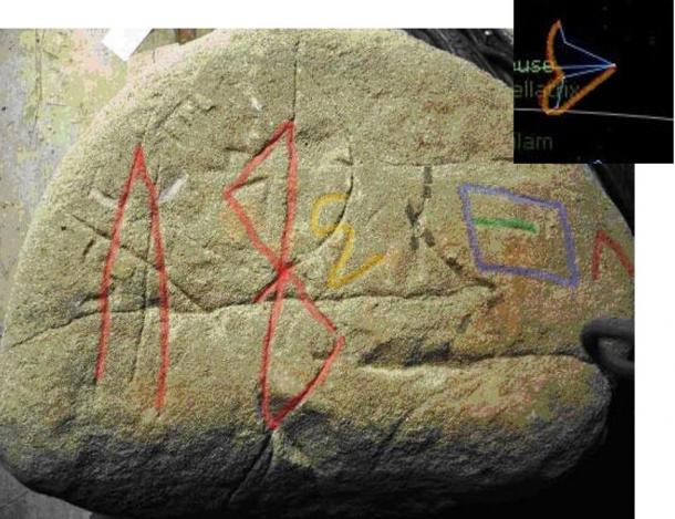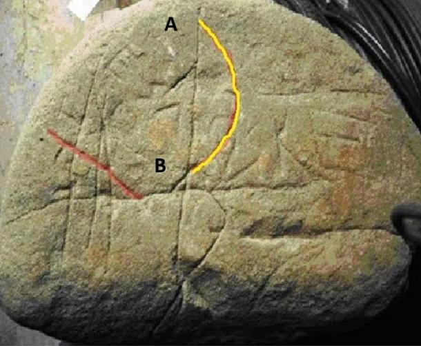 To the right of the Arch of Orion, I noted a very weathered symbol that I have marked with a black line (see above).