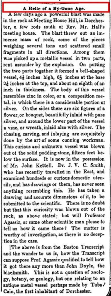 The argument here is that the pot was embedded into the pudding-stone inside of a rock or boulder. A few American Scientific Articles originally published strong suggestions to support these claims.