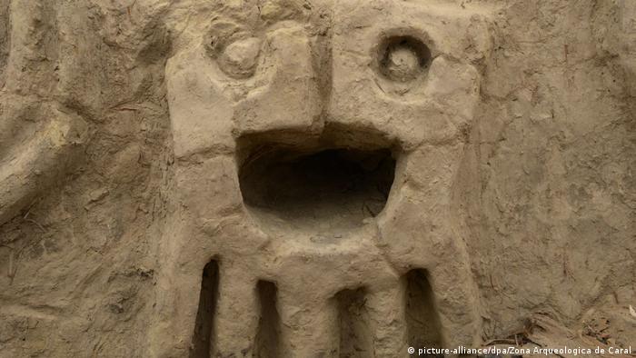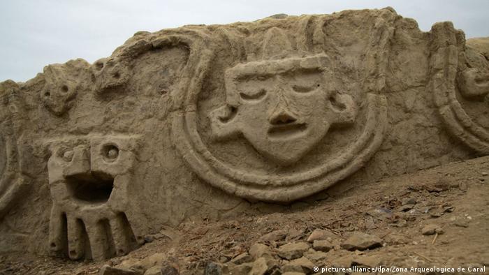 Wall carvings were found in what was once a fishing city of the Caral civilization, the oldest in the Americas. The relief is thought to symbolize a period of drought and famine brought on by climate change.